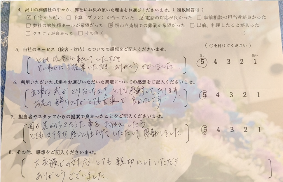 料金につきましては、対象者(故人)様が堺市に住民登録が有るか無いかで異なりますのでご注意ください。
