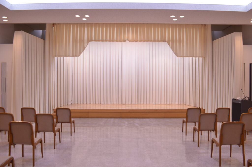 式場は中式場が2つ、小式場が1つ完備されています。小式場は40名様規模の葬儀が、中式場は70名様規模の葬儀が可能です。各式場とも、式場の横に親族控室が完備されており、故人様を偲ぶのにふさわしい厳粛で落ち着いた雰囲気に設計されています。